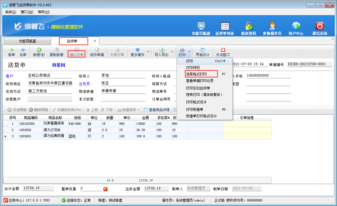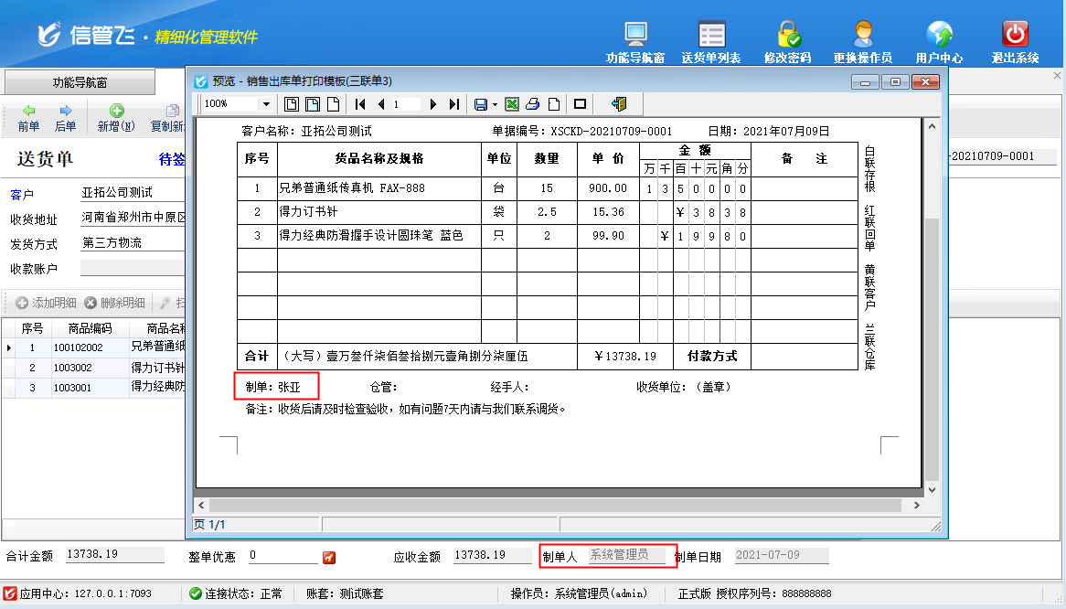 ????歡迎下載試用可調(diào)整模板合并打印的開單軟件:信管飛送貨單軟件