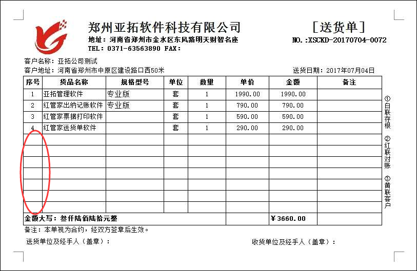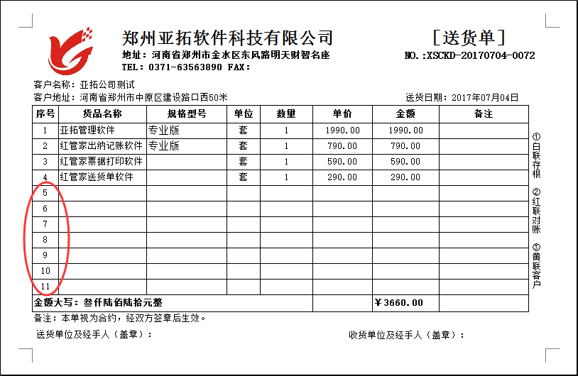 ????亞拓軟件旗下的信管飛送貨單軟件、信管飛RMS軟件、信管飛倉庫管理軟件,都支持開單打印單據(jù),軟件中內(nèi)置了十幾種打印模板供客戶選擇使用,也支持自定義設(shè)計打印模板,軟件內(nèi)置打印模板設(shè)置自動增加空行,根據(jù)客戶需要模板不顯示空白行,我們以送貨單軟件為例設(shè)置下打印模板不顯示空白行。
