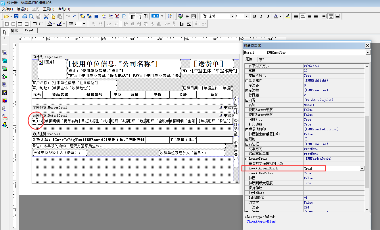 ????有用戶需要當(dāng)單價為0時,打印模板上顯示出0值,本文以送貨單軟件為例,示范下如何取消隱藏零值設(shè)置,在送貨單開單界面打印下選擇“打印格式設(shè)計”。選擇需要修改的模板,點擊“設(shè)計格式”,進(jìn)入模板設(shè)計器界面。選擇明細(xì)欄的“單價”文本框,鼠標(biāo)點擊右鍵,在“隱藏零值”處單擊下,取消勾選符號,然后保存模板就可以。如下圖所示: