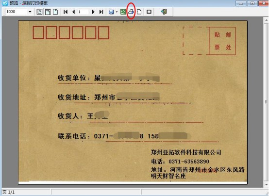 ????二、用戶自定義設(shè)計模板,地址直接輸入在打印模板中固定,如下圖所示: