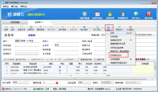 ????信管飛送貨單軟件、信管飛RMS軟件等都支持自定義設(shè)計打印模板格式;支持多個模板進(jìn)行打印,有客戶存在一張單據(jù)需要打印兩個公司名稱,這種情況在軟件中如何設(shè)置,本文以“信管飛送貨單軟件”為例進(jìn)行示范下。