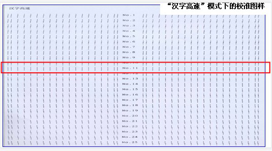 ????按打印機【設(shè)定】鍵,打印機會打印出“漢字高速模式下的校準(zhǔn)圖樣”,表示已進(jìn)入“漢字高速”校準(zhǔn)模式;