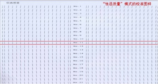 ????按打印機【設(shè)定】鍵,打印機會打印出“信函模式下的校準(zhǔn)圖樣”,表示已進(jìn)入“信函質(zhì)量”校準(zhǔn)模式,如下圖所示:
