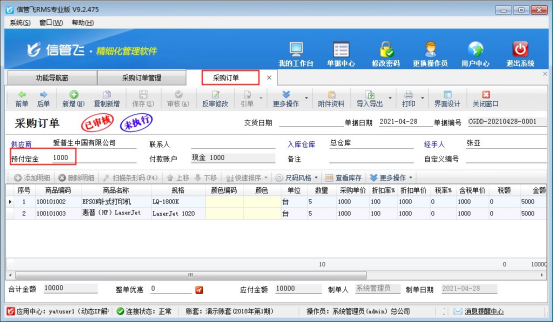 ????信管飛RMS星光版、標準版、專業(yè)版支持把采購貨品付部分定金給供應(yīng)商的金額錄入到軟件中,在實際付款給供應(yīng)商的時候可以扣除預(yù)付的定金金額,本文以“信管飛RMS專業(yè)版”為例示范下采購預(yù)付款如何沖抵采購應(yīng)付款?