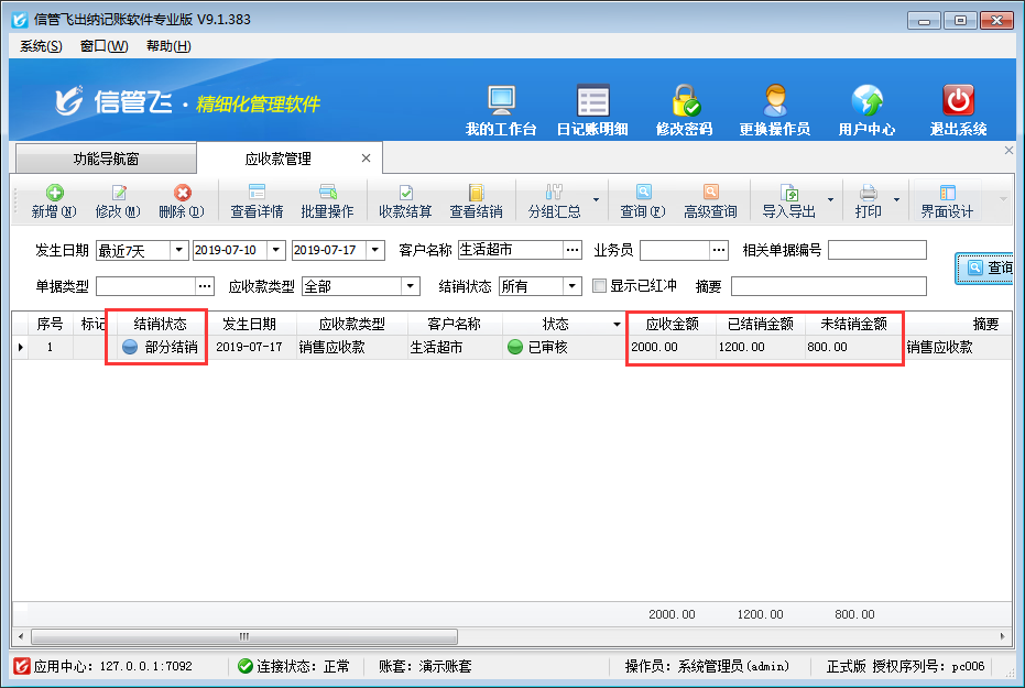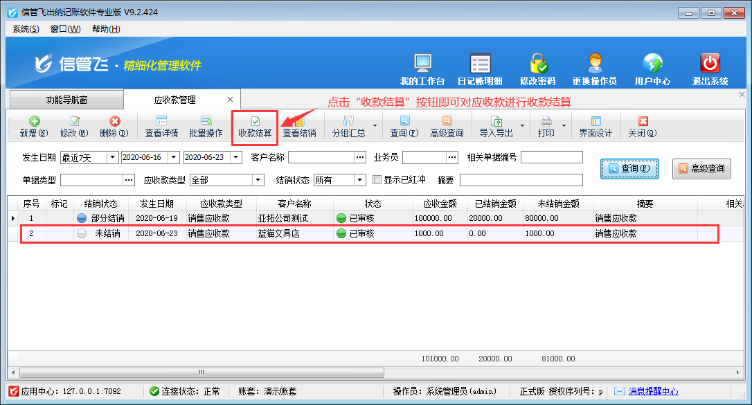 ????信管飛出納記賬軟件可登記客戶和供應(yīng)商的應(yīng)收應(yīng)付款記錄,對于用戶出現(xiàn)部分收款的情況,軟件中如何處理?本文以“信管飛出納記賬軟件”為例進行示范下如何部分結(jié)銷應(yīng)收款?
