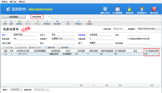 # 6.3.41 收款金額小于當前結(jié)銷金額如何結(jié)算?