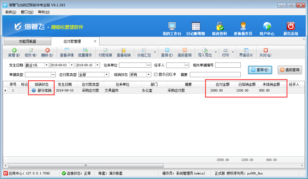 ????部分結(jié)銷狀態(tài)的金額可以繼續(xù)結(jié)銷,直到變?yōu)橐呀Y(jié)銷狀態(tài)。出納軟件的結(jié)算單可轉(zhuǎn)記出納憑證,可參考文章:出納軟件如何設(shè)置結(jié)算單保存或?qū)徍藭r提醒轉(zhuǎn)記日記賬?