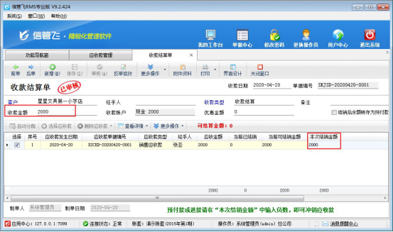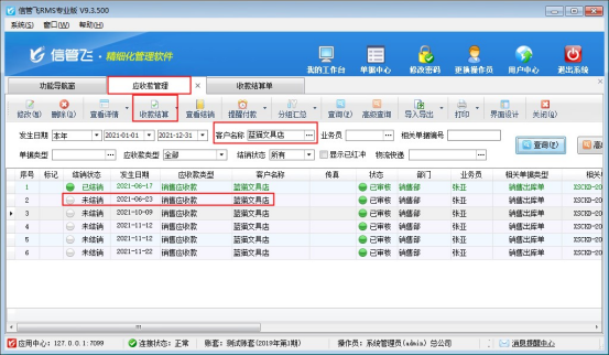 # 6.3.27 信管飛RMS軟件中如何對應(yīng)收款進行收款結(jié)算?