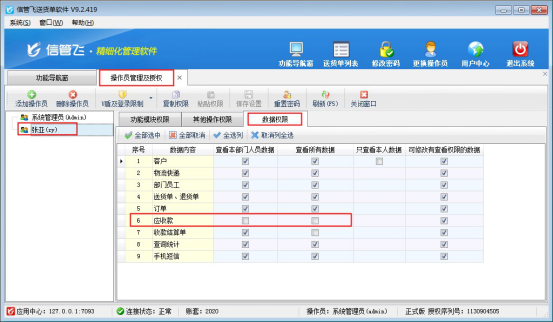 ????信管飛送貨單軟件是集送貨單開單打印和應(yīng)收款管理為一體的軟件,軟件支持設(shè)置多操作員登錄以及可設(shè)置操作員的權(quán)限。有時需要操作員僅能開單,不可查看應(yīng)收款記錄該如何設(shè)置?本文以“信管飛送貨單軟件”為例,示范如何設(shè)置操作員不可查看應(yīng)收款?