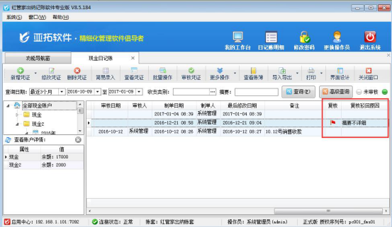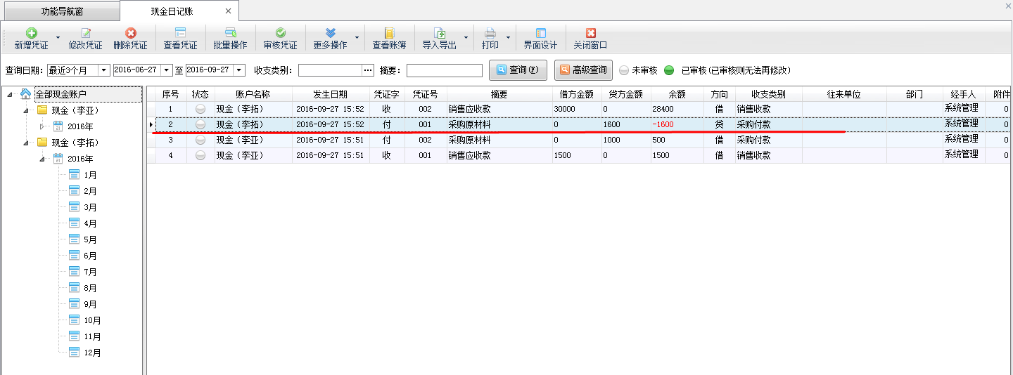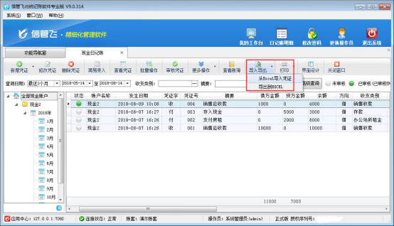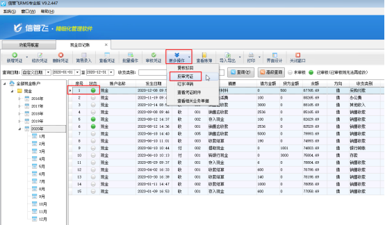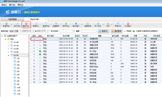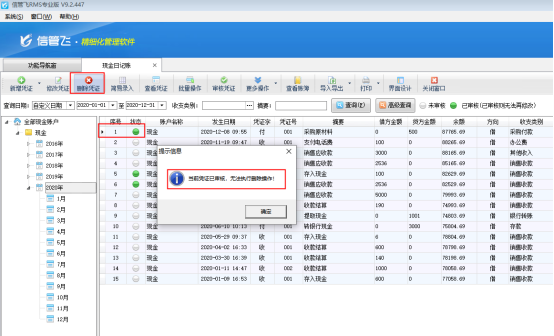 ????信管飛RMS標準版和專業版都包括登記出納日記賬憑證功能,在新增保存日記賬憑證后都可以直接審核憑證,憑證審核后,不允許直接刪除。客戶如果需要刪除已審核的憑證,需要先反審憑證,再進行刪除。下面我們介紹一下在信管飛RMS專業版中如何刪除已審核的日記賬憑證?
