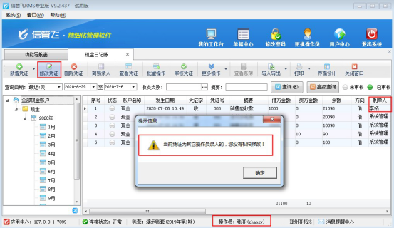 # 6.4.7 信管飛RMS軟件如何設置操作員不可修改其他人員所開的出納憑證?