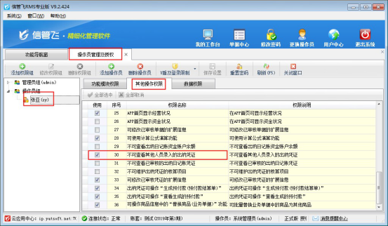 # 6.4.9 信管飛RMS軟件如何設置操作員不可查看其他人員錄入的憑證?
