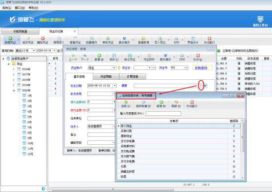 ????信管飛出納記賬軟件登記日記賬憑證時可以錄入憑證摘要信息,憑證摘要是必填項,憑證摘要可以概要的說明憑證內容,方便以后查找。我們以信管飛出納記賬軟件專業版為例,介紹一下出納記賬軟件如何按摘要統計?