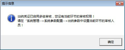????操作員“王偉”沒有“二審”權限,再次點擊審核,會提示如下圖的信息: