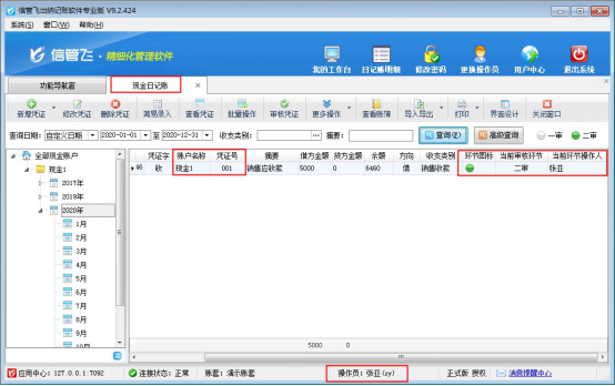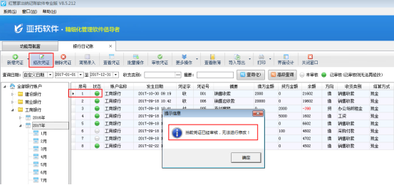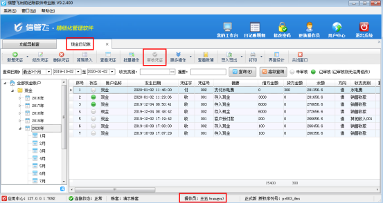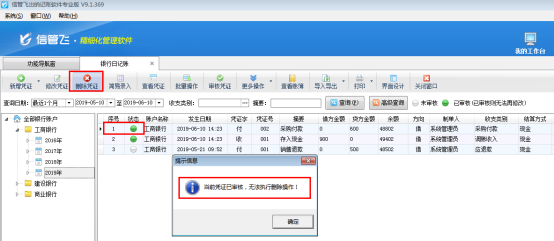 ????信管飛出納記賬軟件標準版和專業版在新增保存日記賬憑證后都可以直接審核憑證,憑證審核后,不允許直接刪除。客戶如果需要刪除已審核的憑證,需要先反審憑證,再進行刪除。下面我們介紹一下在信管飛出納記賬軟件專業版中如何刪除已審核的日記賬憑證?