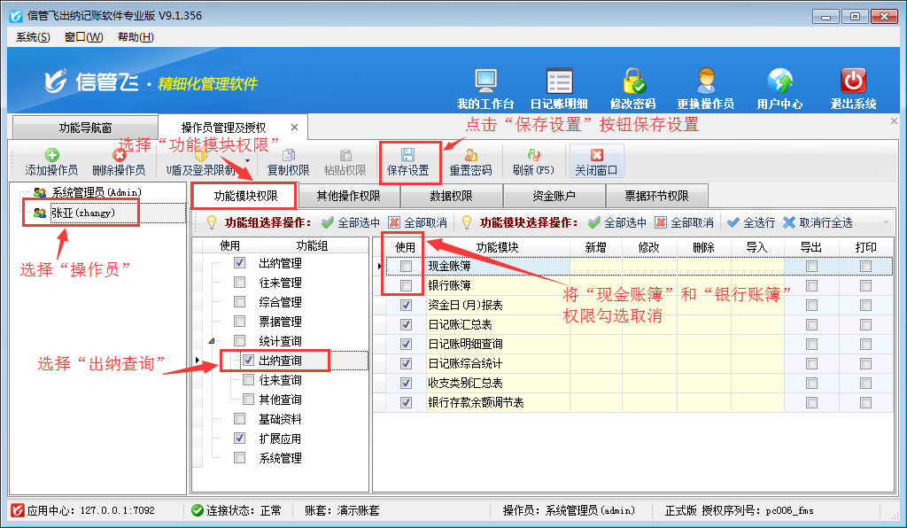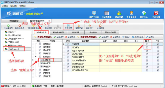 # 6.4.15 出納記賬軟件如何設置操作員不可導出賬簿?