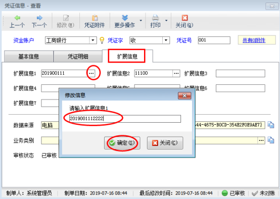 ????啟用可修改已審核憑證的擴展信息功能后,有權限的操作員才可以使用此功能。