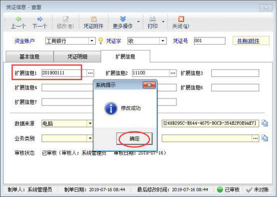 ????可修改已審核憑證的擴展信息”功能在版本V9.1.383中增加,如需要使用可以升級到此版本。