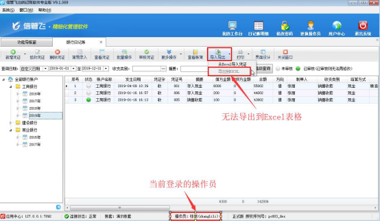 ????信管飛出納記賬軟件允許設置多個操作員進行登錄軟件,軟件支持將現金日記賬、銀行日記賬以EXCEL的形式導出放到自定義的文件夾內以供備份或保存,如果需要設置操作員不允許導出日記賬列表信息,如何設置?本文以信管飛出納記賬軟件專業版為例,示范下如何設置操作員不可導出日記賬列表信息。
