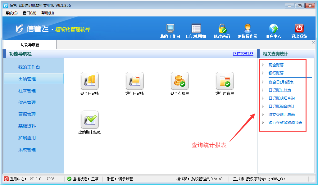 ????歡迎免費下載試用這款包含豐富的記賬統計報表的出納記賬軟件:信管飛出納記賬軟件。