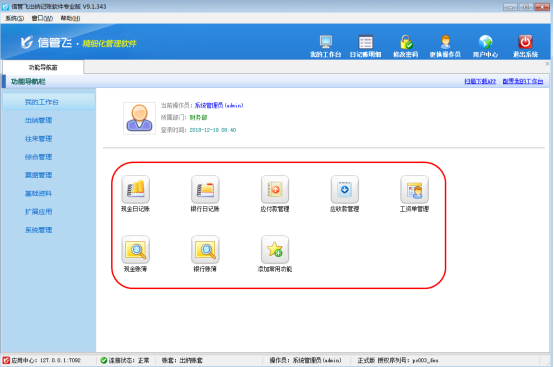 ????信管飛出納記賬軟件是一款針對各類企事業單位財務出納記賬開發的,集現金日記賬記賬與點驗、銀行日記賬記賬與核帳、應收應付往來賬管理、票據管理(支票管理、承兌匯票管理)、發票管理、工資管理、員工借款管理、費用報銷管理等為一體的出納管理軟件。