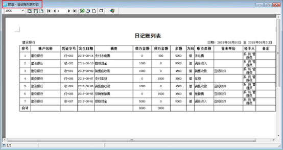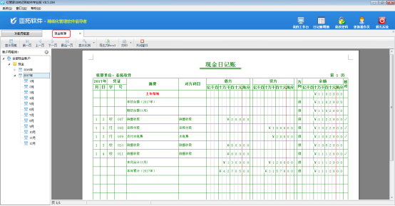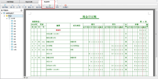 ????(6)查看賬簿:在工具欄點擊“查看賬簿”可以打開并查看相應現金賬戶的現金日記賬賬簿報表。