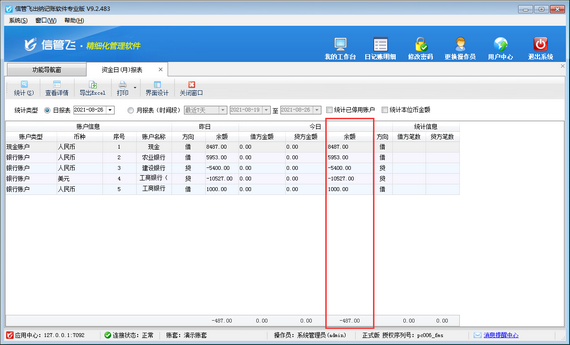 # 6.4.54 出納記賬軟件如何查詢所有資金賬戶總余額?