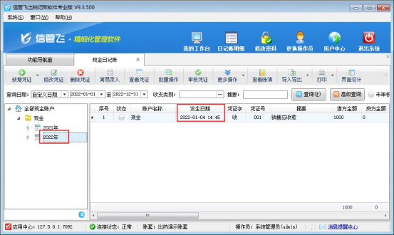 ????軟件支持一直記錄資金賬戶的憑證信息,數據自動保存,有客戶需要登記新一年日記賬時,打開界面不顯示2022年,不清楚如何顯示出來,本文示范下如何操作?
