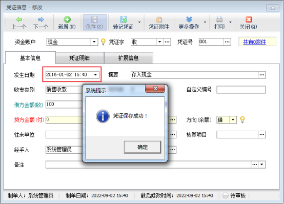 ????出納記賬軟件登記日記賬憑證時,發生日期默認取電腦操作系統日期,另外如需要補錄出納憑證,系統也支持修改日記賬憑證的發生日期進行補錄出納憑證,部分用戶在修改完日記賬發生日期保存憑證時可能會出現“您錄入的發生日期小于賬期的起始日期,請修改后再保存!”的提示,這是因為該憑證錄入的發生日期小于該賬戶賬期的起始日期導致的。本篇文章介紹一下該如何解決這個問題。