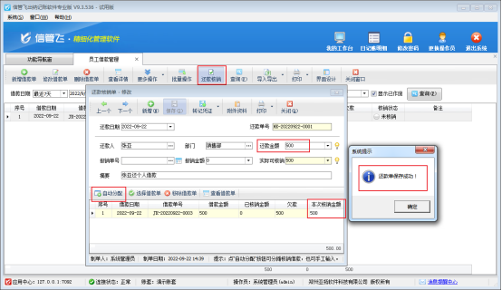 # 6.4.63 出納記賬軟件如何在員工借款管理界面進行還款核銷?