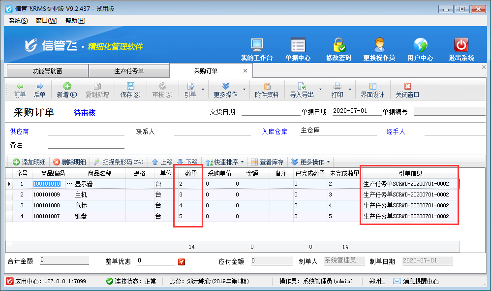 ????引單:可以引用銷售訂單,通過銷售訂單建立生產計劃。引單后,在銷售訂單中也可以查詢訂單所處的環節。