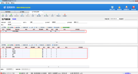 ????生產領料單是屬于生產管理模塊,生產管理模塊是屬于擴展模塊,只有在亞拓管理軟件專業版、紅管家倉庫管理軟件專業版中才能使用,下面我們來演示一下具體的操作步驟。