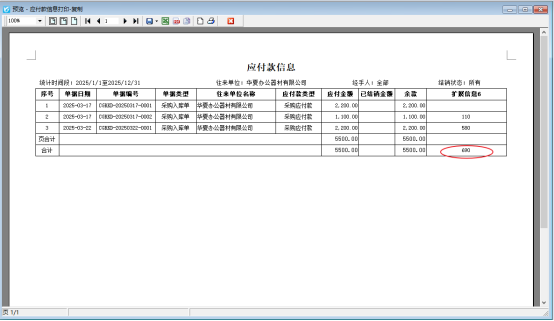 信管飛軟件支持自定義打印模板設計,用戶可以根據自身業務需求調整打印模板樣式和設計格式,支持打印模板設置擴展信息參與合計,本文介紹下擴展信息如何在打印模板設置合計? 擴展信息非數值數據項,還會存在空值的情況,不能直接參與合計計算,需要先判斷擴展信息6是否為空值,判斷后再用函數將字符串進行轉換后可以進行計算。 在應付款管理界面點擊打印---打印格式設計,選中模板點擊設計格式;進入模板設計器,雙擊擴展信息6對應合計的文本框,輸入計算公式:[SUM([IIF