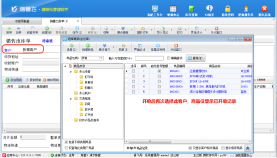 在倉庫管理與銷售開單的日常運(yùn)營中,您是否頻繁遭遇這樣的挑戰(zhàn):系統(tǒng)內(nèi)商品種類繁多,開單時需在成千上萬條商品記錄中艱難搜尋,才能定位到對應(yīng)客戶的合作產(chǎn)品?這一過程不僅耗時耗力,還極易因選錯規(guī)格或漏選單品而影響工作效率與客戶滿意度。 信管飛倉庫管理軟件、信管飛RMS軟件、信管飛送貨單軟件推出“選擇商品窗口僅顯示客戶相關(guān)商品”功能,讓銷售開單更精準(zhǔn)、更高效,助力企業(yè)實(shí)現(xiàn)精細(xì)化客戶服務(wù)與管理升級。 告別無效篩選,精準(zhǔn)鎖定客戶專屬商品 &n