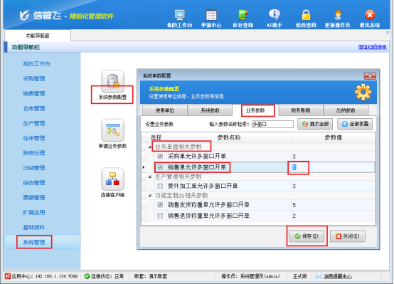 信管飛進(jìn)銷存軟件中可以設(shè)置同一商品不同的客戶型號(hào),方便用戶管理同一個(gè)商品多型號(hào)的情況,本篇文章以信管飛RMS軟件來(lái)詳細(xì)介紹一下如何啟用同一商品不同的客戶型號(hào)功能? 觀看演示視頻,快速設(shè)置同一商品不同客戶型號(hào)的設(shè)置方法。鏈接已備,點(diǎn)擊即學(xué)。 在功能導(dǎo)航窗點(diǎn)擊“系統(tǒng)管理”——》“系統(tǒng)參數(shù)設(shè)置”——》“業(yè)務(wù)參數(shù)”可以進(jìn)入到“業(yè)務(wù)參數(shù)”配置界面,在用戶定制功能參數(shù)內(nèi)打勾啟用“啟用商品的客戶型號(hào)管理”參數(shù),并設(shè)置商品信息中不同客戶的客戶型號(hào),如下圖所