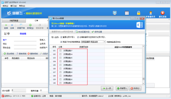 信管飛軟件支持通過(guò)Excel導(dǎo)入數(shù)據(jù),通過(guò)Excel數(shù)據(jù)導(dǎo)入可以將數(shù)據(jù)方便快捷的導(dǎo)入到軟件中,省去了使用初期大量的數(shù)據(jù)的錄入所要消耗的時(shí)間及人力物力,并避免人為錄入的誤差,使數(shù)據(jù)錄入的簡(jiǎn)單、準(zhǔn)確、高效。然而,部分客戶使用的擴(kuò)展信息字段比較多在導(dǎo)入明細(xì)數(shù)據(jù)時(shí)可能會(huì)遇到擴(kuò)展信息10之后的擴(kuò)展字段不顯示。下面我們以“信管飛送貨單軟件”為例,介紹下出現(xiàn)這種情況如何解決? 解決方法:在導(dǎo)入Excel數(shù)據(jù)界面,鼠標(biāo)點(diǎn)擊空白地方右鍵,選擇刷新數(shù)據(jù)項(xiàng),被隱藏的擴(kuò)展信息及其他字段都會(huì)顯示出來(lái),如:商品擴(kuò)展信息1、擴(kuò)