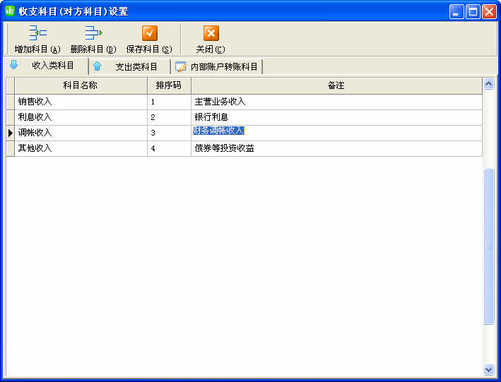 2、對方科目分為收入科目和支出科目(基礎資料->對方科目維護),便于進行統(tǒng)計分析。