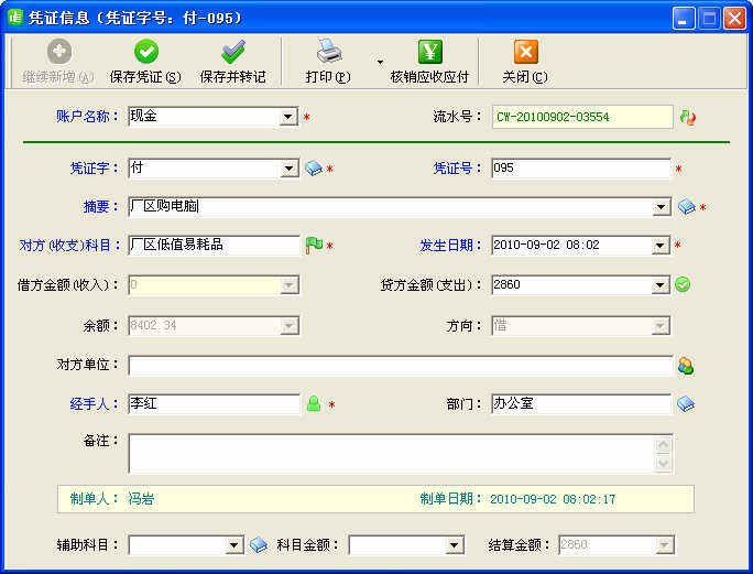 日記賬憑證信息,經過優(yōu)化后,摘要欄可顯示更多內容,對方科目可以通過雙擊輸入框快速錄入