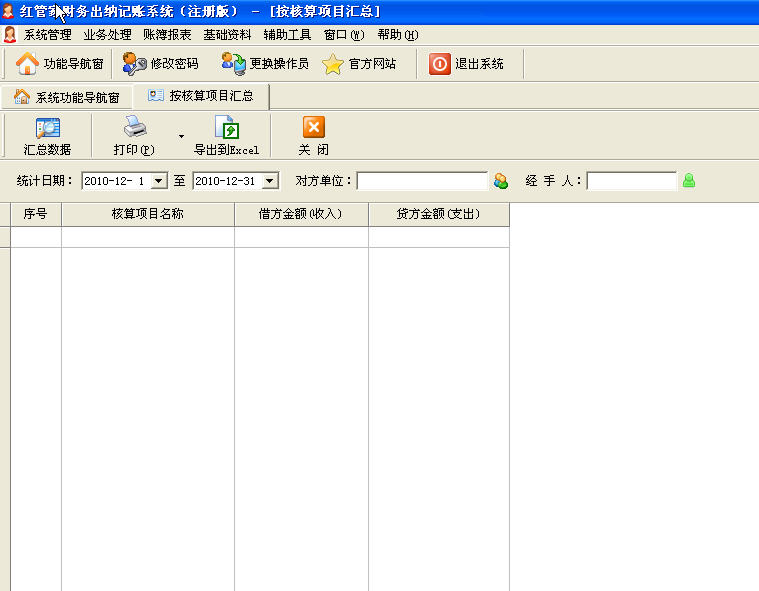 2、統計查詢增加“按核算項目統計”功能(在賬簿報表->綜合匯總統計->按核算項目匯總表),已經使用過本系統的用戶,如果繼續使用原帳套,需要導入打印模版。