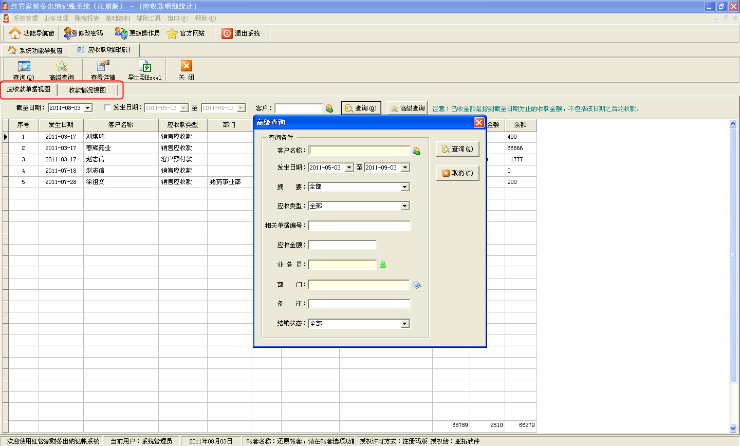 2、應(yīng)收款管理和應(yīng)付款管理增加部門列和高級查詢功能。