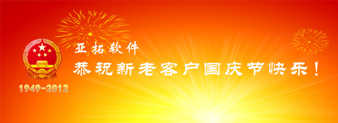 按照國務院有關中秋國慶假期安排,亞拓軟件9月30日至10月7日放假調休,共8天,10月8日正常上班。屆時,我公司售后技術支持QQ和熱線電話在9月30日、10月1日、2日、3日、4日、5日、6日暫停服務(在此期間如有問題,請撥打我們提供的技術人員手機),10月7日提供技術支持。 祝大家國慶節愉快!全家幸福!