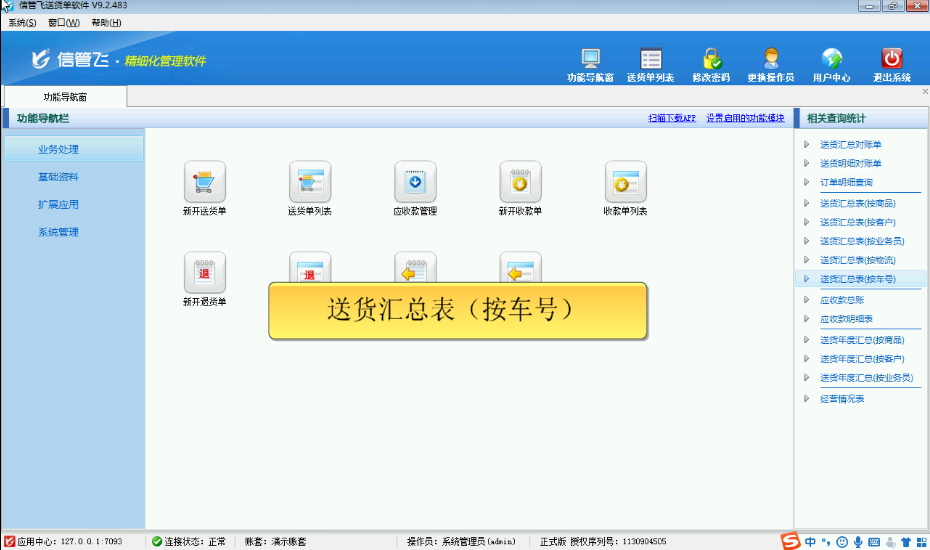 介紹送貨單軟件送貨匯總表(按車號)的主要功能和操作步驟。