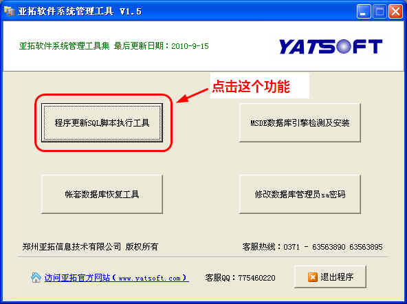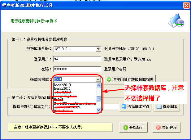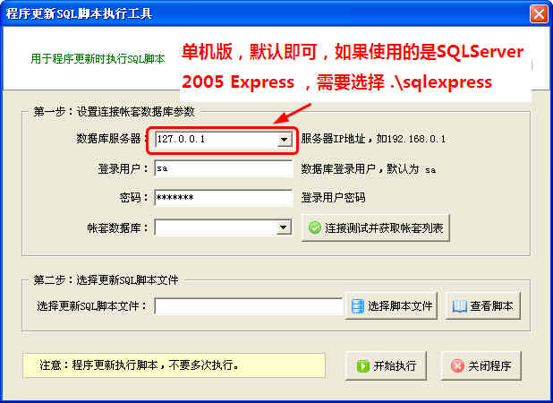 第二步、點擊“程序更新SQL腳本執(zhí)行工具”,進入更新腳本窗口: