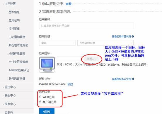 (3)進入應用基本信息頁面,如下圖所示,下圖中的AppKey 和 App Secret需要在紅管家網店管理軟件中要使用。