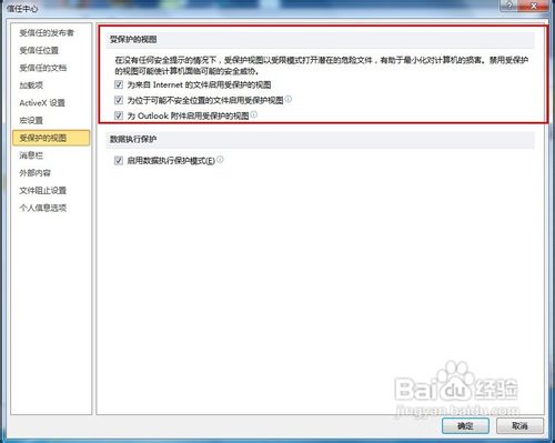 出現(xiàn)這種問(wèn)題的原因是微軟為了推動(dòng)新的文檔格式,默認(rèn)設(shè)置不允許打開(kāi)早期版本Excel文件,可以進(jìn)入文件菜單中的“選項(xiàng)”->“信任中心”->點(diǎn)“信任中心設(shè)置”,然后點(diǎn)“受保護(hù)的視圖”,把右邊的所有選項(xiàng)都不勾選。