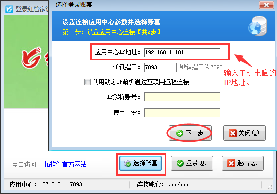 2,網絡版本客戶端連接主機電腦,需要主機電腦的應用中心程序打開。