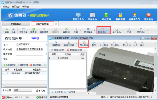 歡迎下載試用支持出庫單打印附件資料圖片的進(jìn)銷存軟件:信管飛RMS軟件