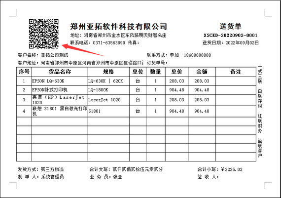 銷(xiāo)售出庫(kù)單綁定客戶微信二維碼打印預(yù)覽情況如下圖所示: