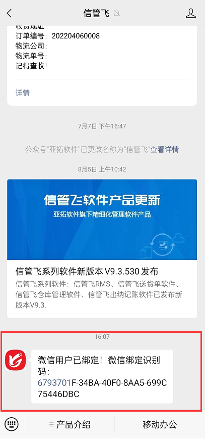 客戶微信通過(guò)掃描此二維碼可進(jìn)行綁定,如下圖所示。