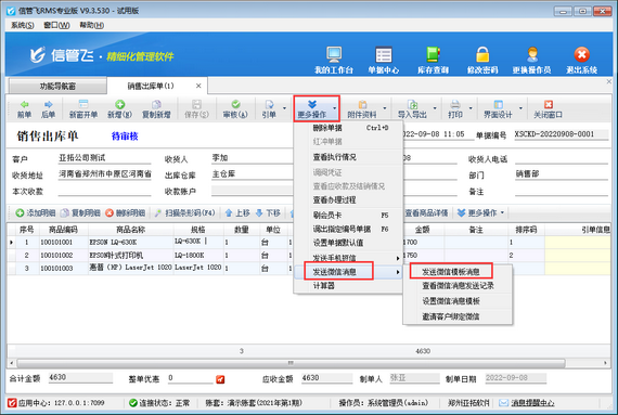 推送微信消息接收人員支持推送給業(yè)務員、客戶,系統(tǒng)內(nèi)支持邀請業(yè)務員及客戶綁定微信賬號,業(yè)務員及客戶綁定微信賬號后,在軟件內(nèi)開單時即可對業(yè)務員及客戶綁定微信賬號推送業(yè)務單據(jù)消息。本篇文章介紹一下如何設置自動發(fā)送微信消息?